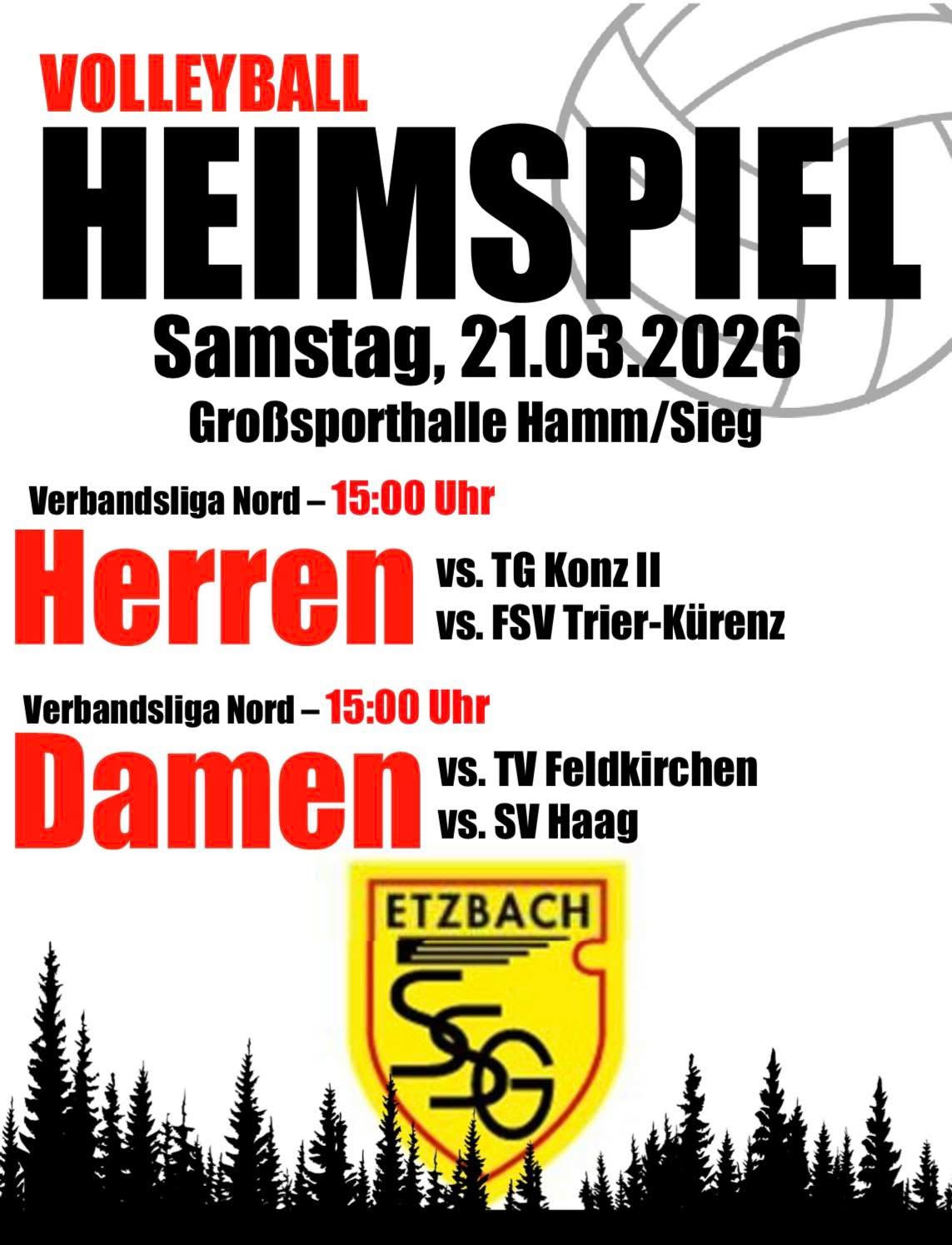 Die Verbandsliga-Volleyballteams der SSG Etzbach sind jeweils in der Fremde gefordert. Sowohl das Frauen- als auch das Männerteam sind verletzungs- und krankheitsbedingt noch gebeutelt. Für die Frauen geht es am Samstag um 18 Uhr an der Saar gegen die TG Konz II. „Trotzdem glaube ich, dass alles drin ist“, so Mannschaftsführerin Janina Gerhards. Die Männer spielen schon zuvor um 12 Uhr beim TV Rengsdorf. Mit einem Sieg könnte die SSG den Gegner überholen.